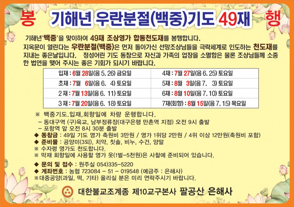 기해년 우란분절(백중)기도 49재